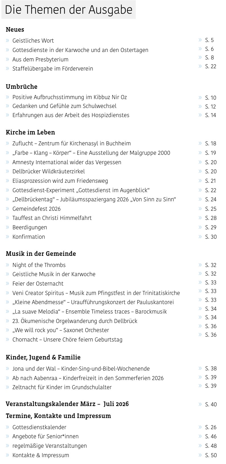 Bitte beachten Sie, dass die elektronische Ausgabe des Gemeindebriefes von der Druckausgabe in der Gestaltung etwas abweicht. So werden beispielsweise die Seiten zur Konfirmation und „Freud und Leid“ aus datenschutzrechtlichen Gründen nicht in der Internetausgabe des Gemeindebriefes angezeigt. Wir danken für Ihr Verständnis.